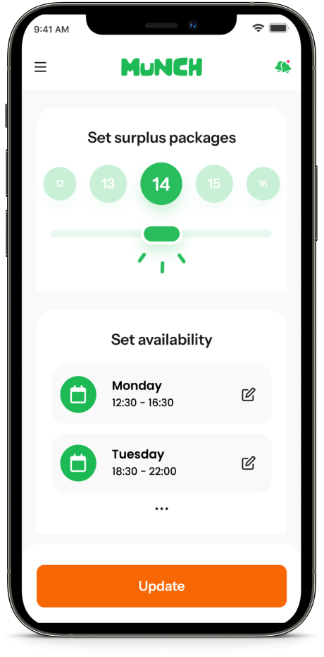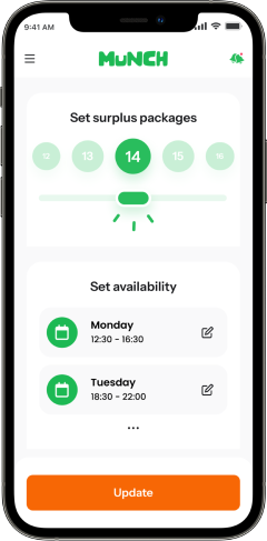 Upload your quantity of unsold surplus food in the app. Wrap your packages. The content of each package is a surprise for customers. The app will notify you of incoming orders. Customers will come to your store to collect their packages. Track how many you sell in the app and get paid. It’s easy with no extra work required!