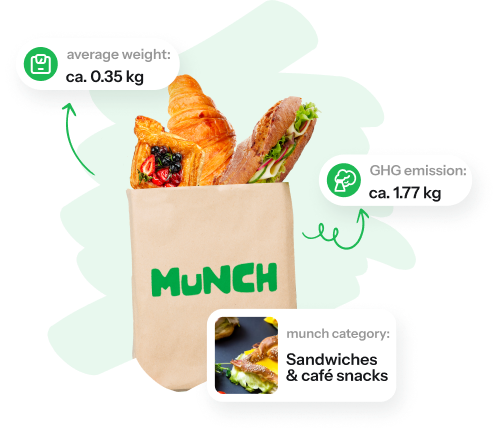 In the Munch app, you can filter surprise packages according to categories, e.g.: Sandwiches & Café snacks, Desserts, Fruits & vegetables. This not only helps you find your match, but allows us to estimate our impact more accurately.
