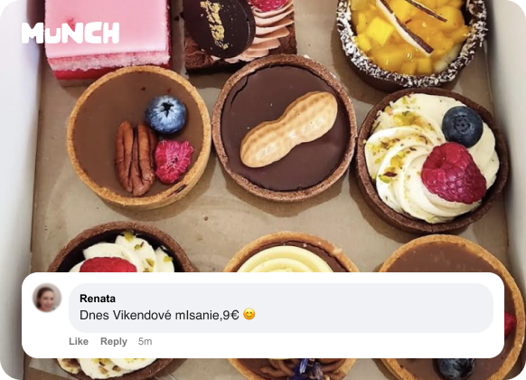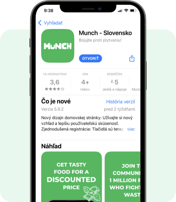 Munch.sk je webová stránka (a aplikácia), prostredníctvom ktorej reštaurácie, pekárne, hotely a obchody s potravinami predávajú svoje nepredané, ale kvalitné potraviny so zľavou minimálne 50 %. 🥨 S Munch môžete ušetriť jedlo za priaznivú cenu a aktívne bojovať proti plytvaniu potravinami, čím prispejete k ochrane svojho životného prostredia! 🌱