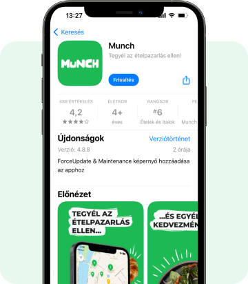 A Munch.hu egy olyan honlap (és applikáció), amin keresztül éttermek, pékségek, szállodák és élelmiszerboltok értékesítik az el nem adott, de jó minőségű ételeiket, méghozzá legalább 40-50% kedvezménnyel. 🥨 A Munch-csal nem csak kedvező áron menthetsz élelmiszert, de az ételpazarlás ellen is aktívan felléphetsz, ezzel téve környezeted megőrzéséért! 🌱